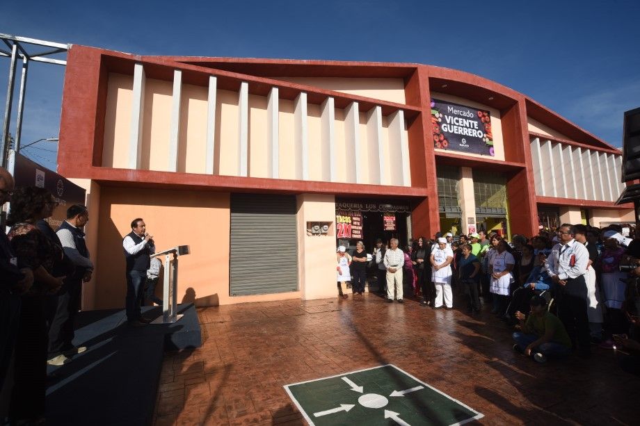 Se realizaron obras de remodelación y mejoramiento integral del mercado “Vicente Guerrero”, se ejecutaron acciones de mejoras sustanciales en pisos, drenaje sanitario, lavabos, mosquiteros y el manejo de residuos sólidos y desechos, así como la implementación de medidas de seguridad, colocación de señalética e instalación de extintores contra incendio.