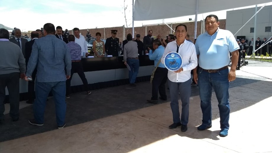 Posteriormente se realizó la entrega del equipamiento correspondiente para cada municipio, entre los cuales se encontraba Cuerámaro que recibió 13 chalecos antibalas, y 2 moto patrullas.