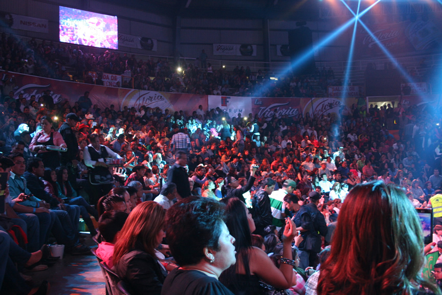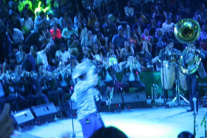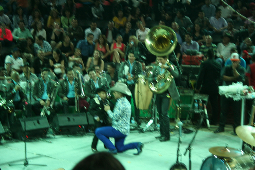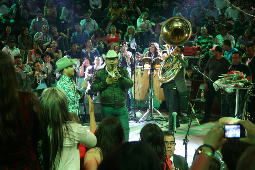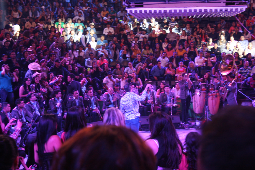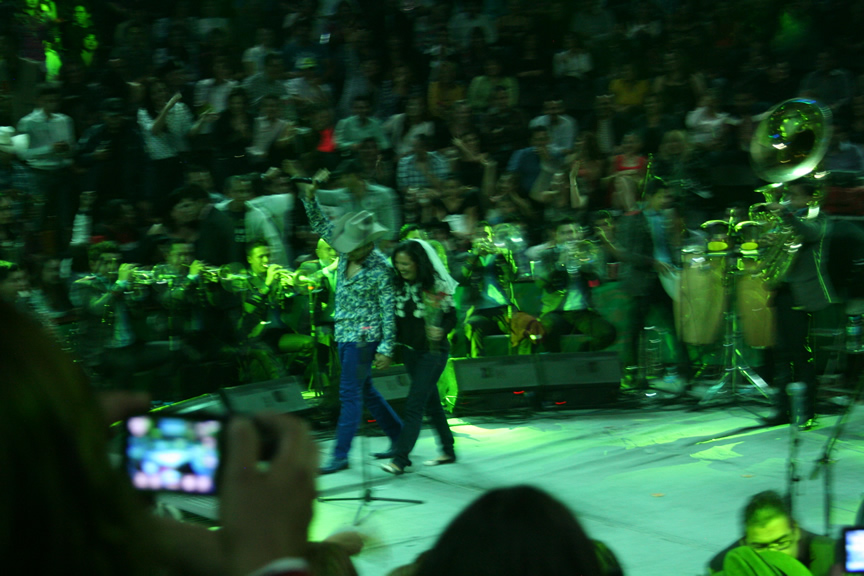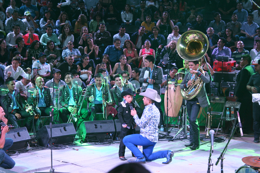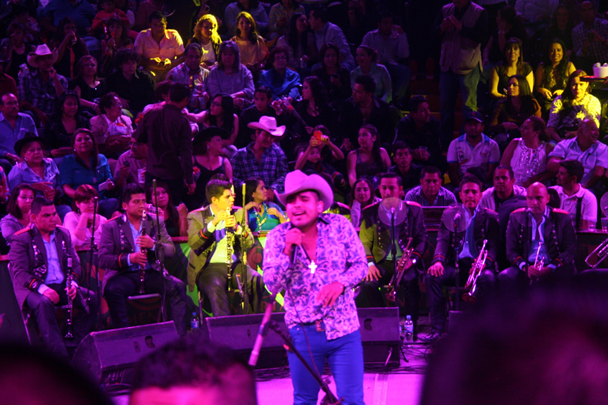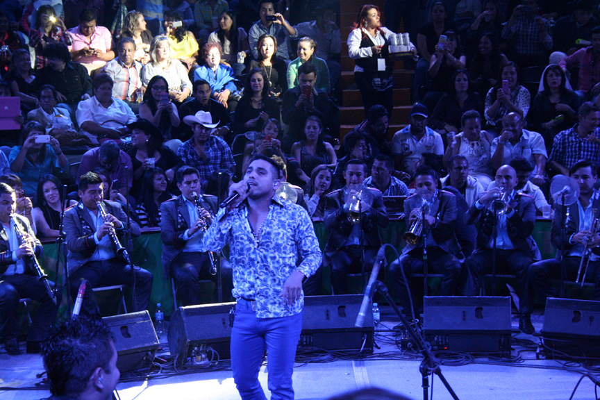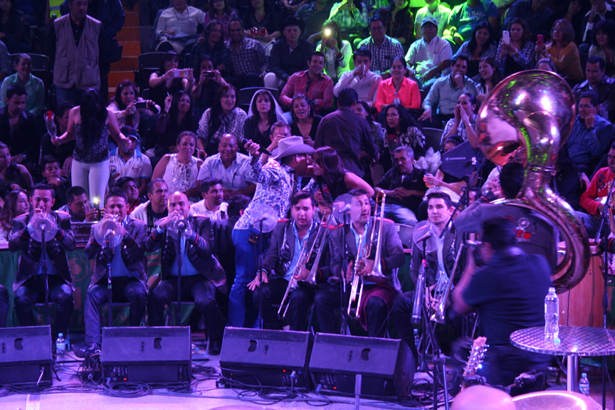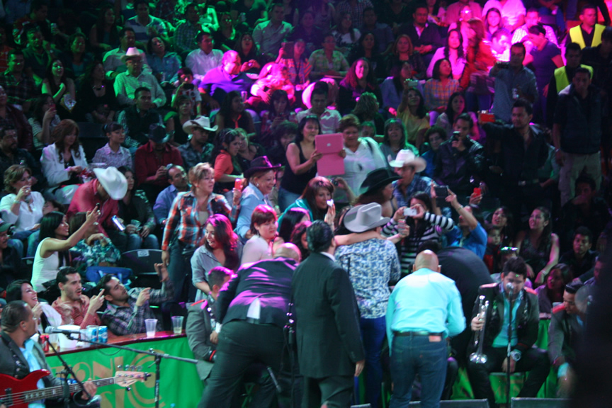 Durante su presentación Espinoza Paz compartió algunos instantes con los afortunados fans que tuvieron la oportunidad de pasar al escenario para tomarse una foto, abrazarlo y hasta para echarse un palomazo con el artista.