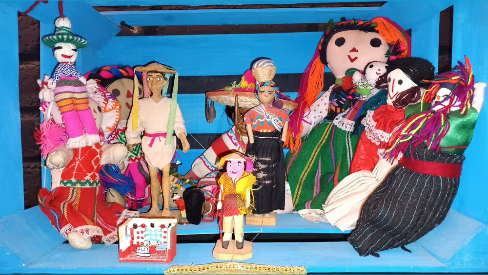 Se trata de una muñeca de cartón, hecha por artesanos celayenses, sí como muñecas de trapo procedentes de varias partes del país, entre ellas Oaxaca y Chiapas. Destaca una “josesita” de San José Iturbide, Guanajuato.
