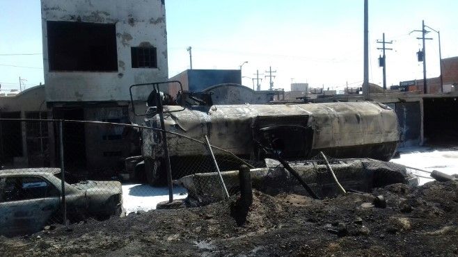 Salamanca, Guanajuato.- La explosión de una pipa cargada de gasolina en la carretera Salamanca-Celaya desencadenó en la muerte de un policía federal y varios lesionados, así como afectaciones en viviendas y autos.