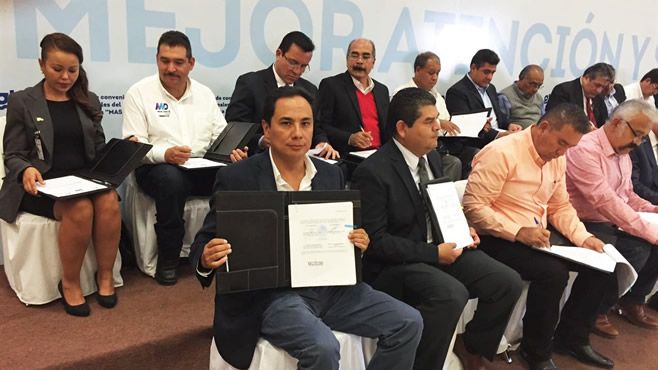 Cuerámaro, Guanajuato.- El presidente municipal Moy Cortéz asistió este jueves a la firma de convenios del Programa Mejor Atención y Servicio (MAS), donde 14 alcaldes fueron partícipes de este programa para sumarse al compromiso de brindar un servicio de calidad a la ciudadanía.