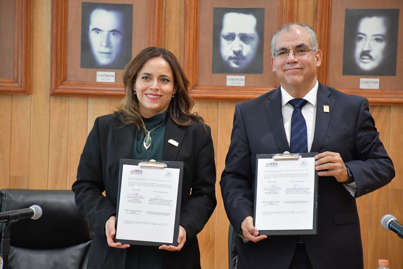 Guanajuato, Gto. Con la finalidad de generar las condiciones necesarias paraagilizar y optimizar el proceso de entrega y recepción de información que incida en el registro de personas candidatas para cualquier cargo de elección popular, se llevó a cabo la firma del convenio de colaboración entre el Poder Judicial y el Instituto Electoral del Estado de Guanajuato.