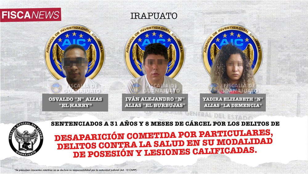 La Fiscalía de Guanajuato logró que los integrantes de una célula delictiva de Irapuato fueran sentenciados.