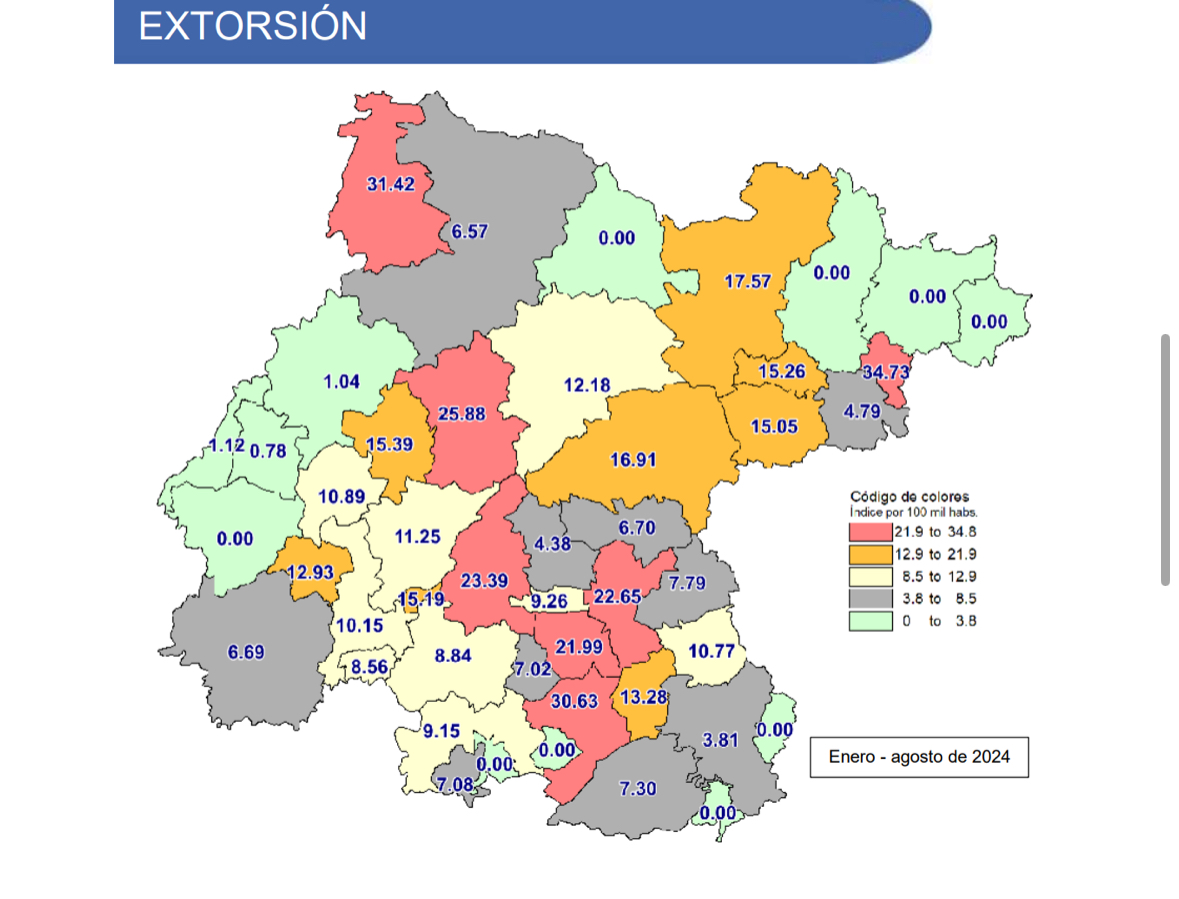 Un rubro en el que el municipio no es primer lugar, pero está entre los primeros, es el de extorsión. Ocupa el lugar 4, con 53 casos y 25.88 de índice.