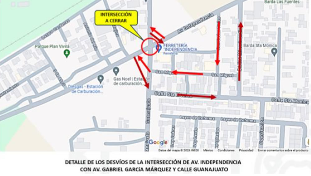 La intersección vial de avenida Independencia con avenida Gabriel García Márquez y calle Guanajuato, estará cerrada de manera temporal.