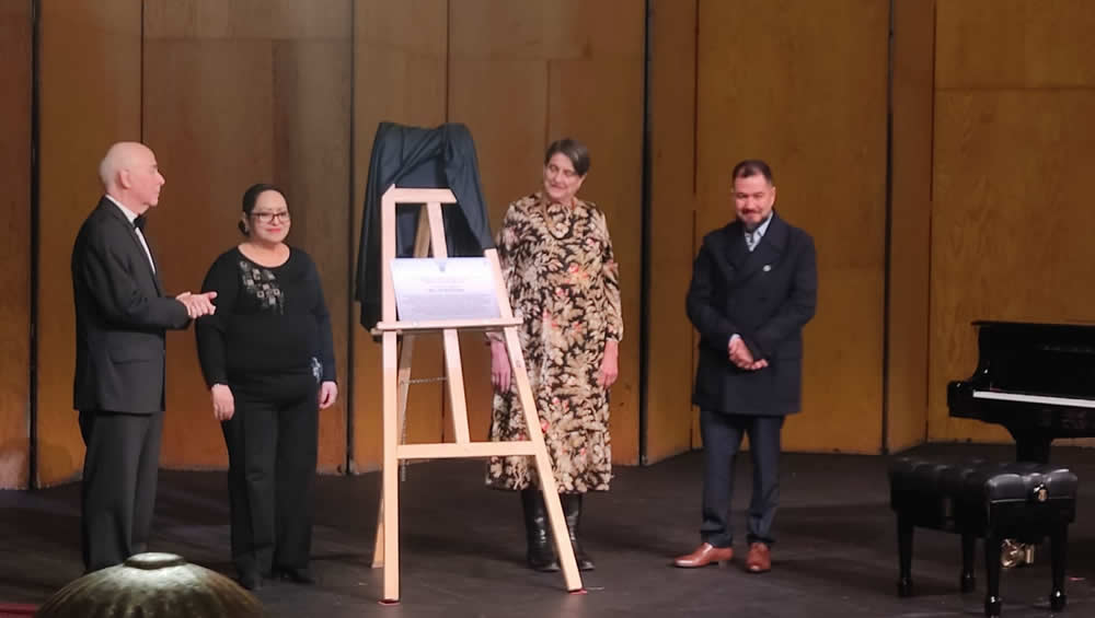 Antes del concierto, la Lcda. Adriana Camarena de Obeso, Directora del Instituto Estatal de Cultura; la Dra. Teresita Rendón Huerta Barrera, Rectora del Campus Guanajuato y el Dr. Salvador Hernández Castro, Secretario General de la UG, develaron la placa que designará como claustro “Mtra. Luz María Puente” a la actual sala de ensayos y actividades múltiples del Departamento de Música y Artes Escénicas de la División de Arquitectura, Arte y Diseño.