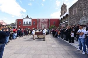 Por la mañana el Padre José Alfredo Cabrera oficio la misa en memoria de J. Cruz Vázquez Chávez, luego en la plaza de Los Fundadores se realizó el homenaje y sentido adiós a “Crucito”, ahí al Alcalde Ortiz Gutiérrez junto con la Presidenta del DIF Municipal Ana Isabel Ortiz García, el Secretario del Ayuntamiento Francisco Xavier Alcántara Torres y el Secretario de Seguridad Ciudadana Samuel Ugalde García montaron guardia de honor en torno al ataúd del ejemplar servidor público fallecido inesperadamente.