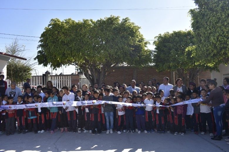 Pénjamo, Guanajuato.- Una escuela más segura y que luce mejor. Esta mañana, el alcalde Juan José García, entregó la barda perimetral en la escuela primaria, Antonio Gómez Rodríguez.