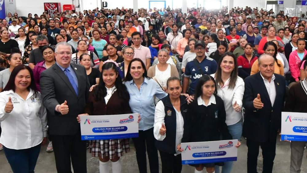 Lorena Alfaro García, presidenta municipal, destacó la importancia de apoyar económicamente a las niñas, niños y jóvenes estudiantes, pues con ellos se impulsa su permanencia en las aulas.