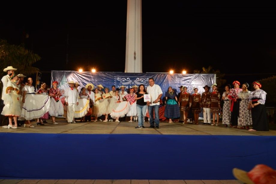 Para finalizar el Director de Casa de la Cultura, Martín Ramírez Camacho realizó la entrega de un reconocimiento al ballet folclórico IMCAR, en agradecimiento a todos los integrantes por su participación en dicho evento.