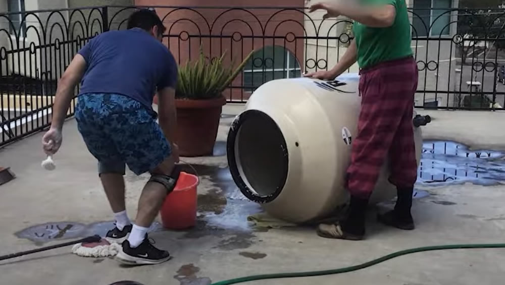 Una vez vaciado, se debe empezar a tallar con una escoba para limpiar todos los residuos, se debe enjuagar el interior con una cubeta de agua limpia y sacarla nuevamente, además de secarlo con una franela.