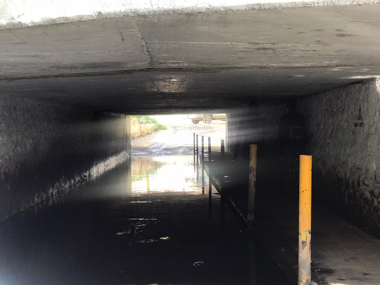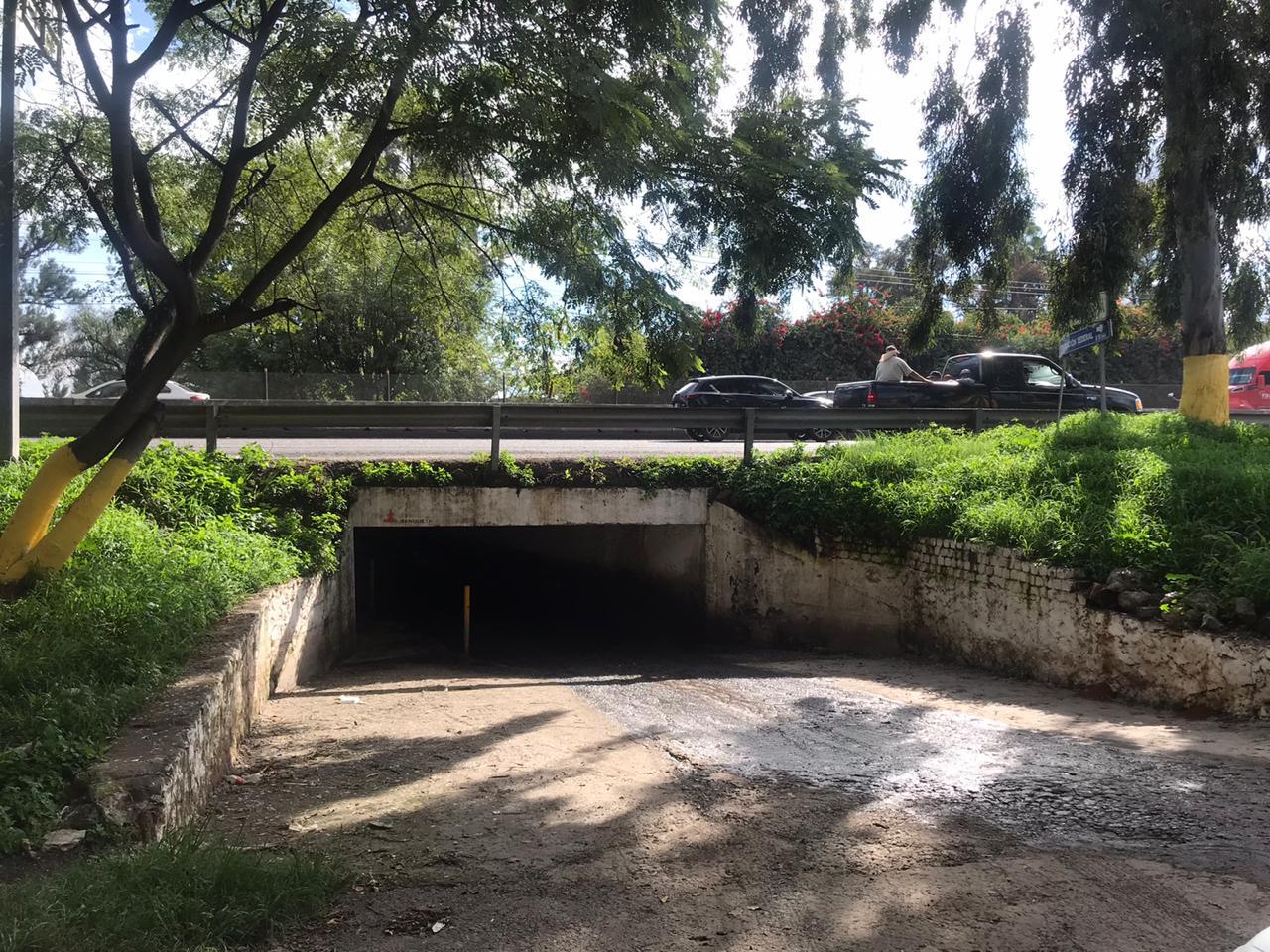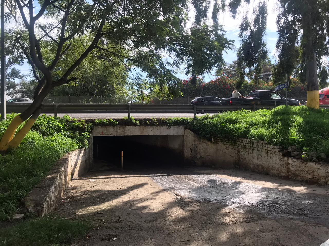 A lo que los habitantes, usan como paso peatonal, una alcantarilla que da desfogue a la carretera.