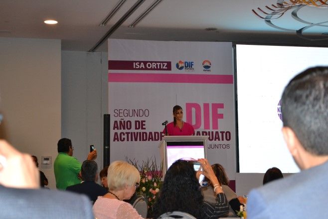 Irapuato, Guanajuato.- La presidenta del Sistema para el Desarrollo Integral de las Familias (DIF) Irapuato, Isabel Ortiz García presentó su segundo Informe de Actividades a través de cuatro ejes: Familias y Comunidad, Inclusión social, Bienestar de Niñas, Niños y Adolescentes y Desarrollo Institucional.