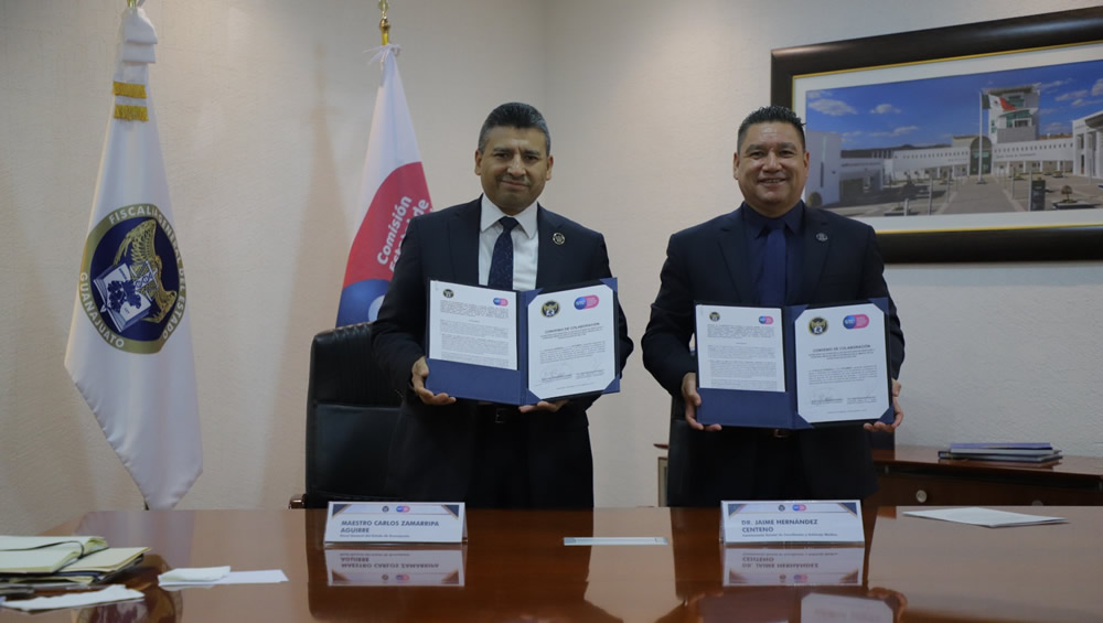Guanajuato, Gto.- La Fiscalía de Guanajuato y la Comisión Estatal de Conciliación y Arbitraje Médico acordaron establecer las bases y mecanismo de colaboración, para eficientar la prestación de servicios a favor de la ciudadanía, así como esquemas de coordinación para la atención de las solicitudes de peritajes y opiniones médicas institucionales con motivo de hechos que pudieran constituir conductas delictivas derivadas de la prestación de servicios médicos.