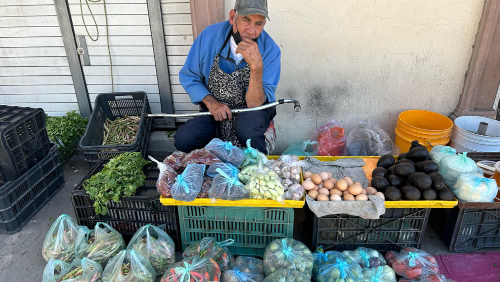 A pesar de llevar un bastón y sentir el “peso de los años”, Margarito no pierde la esperanza ya que confía en que las ventas se regularicen en los próximos días y así poder asegurar un ingreso más estable para él y su esposa.