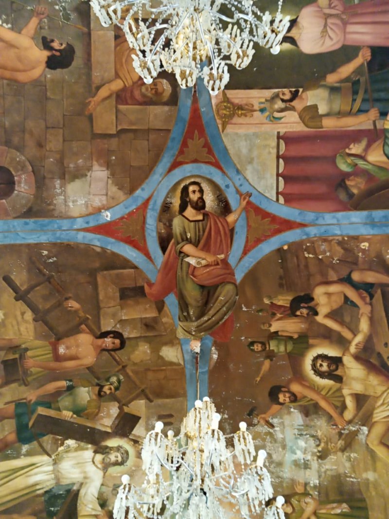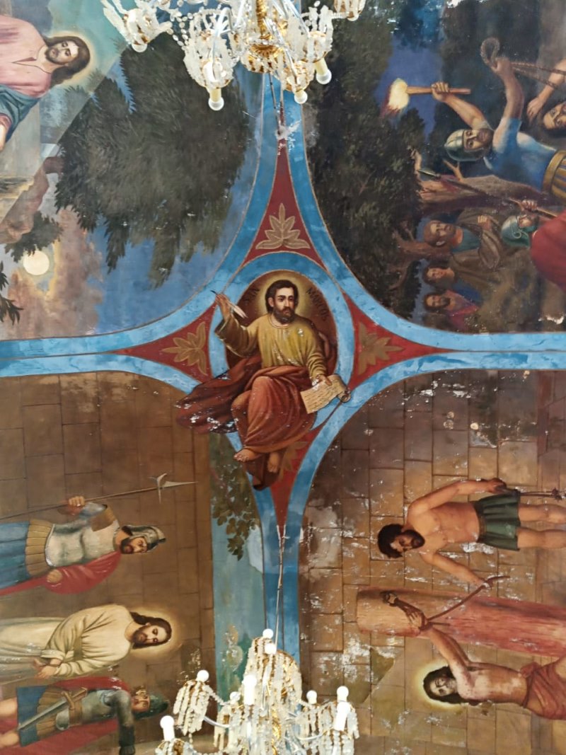 Irapuato, Guanajuato.- José Dolores Aguilera, un muralista que ha compartido su talento en varias zonas del bajío, sobre todo en Irapuato, posee una serie de pinturas en las cavidades interiores del techo del Templo de Nuestra Señora de los Dolores, ubicada en la colonia Santa Julia.