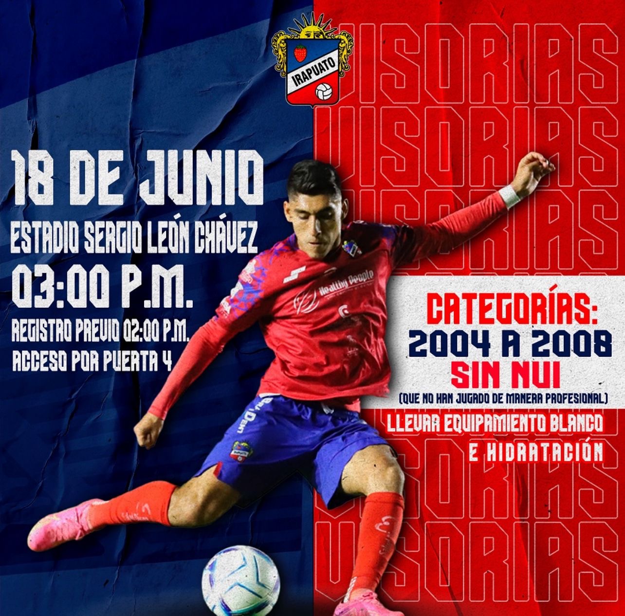 Las visorias están abiertas a jugadores nacidos entre 2004 y 2008. El próximo martes 18 de junio será el turno para los jugadores sin experiencia profesional, con inicio a las tres de la tarde. Sin embargo, se recomienda llegar a las dos para realizar el registro.