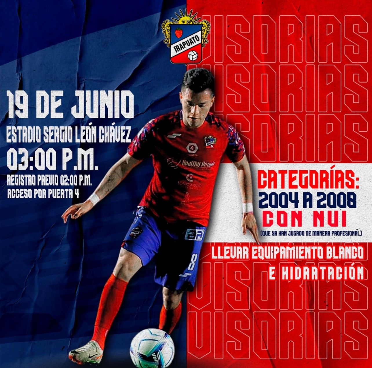 Para los jugadores con experiencia profesional, la visoria será el miércoles 19 de junio a la misma hora, y también deben llegar a las dos de la tarde para registrarse.