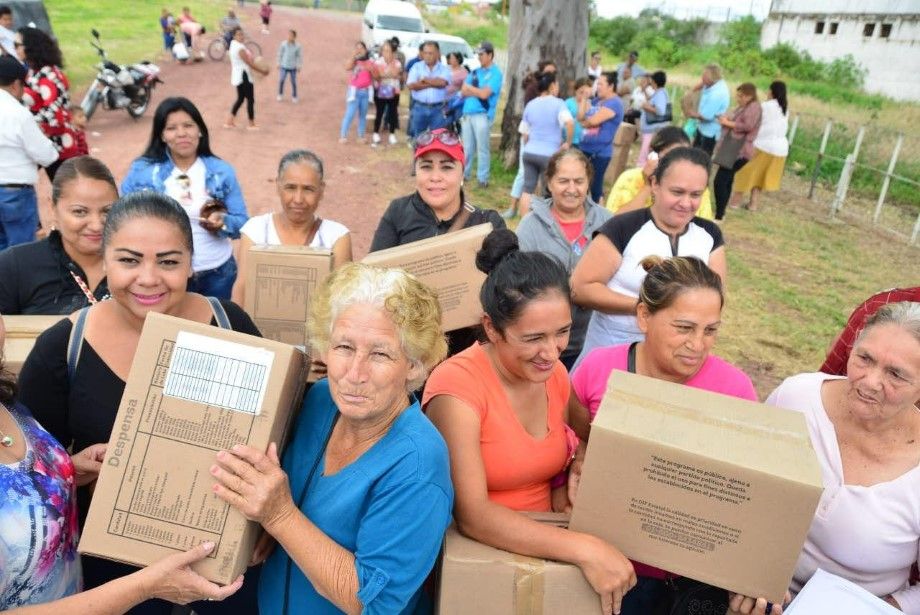 Las despensas entregadas contienen alimentos como: Leche descremada en polvo, aceite vegetal, avena en hojuela, cereal integral sin azúcar, pasta integral, pasta integral tipo espagueti, frijol, lenteja, alubia, garbanzo, soya texturizada, atún en agua, carne de pollo deshebrada natural, sardina, mezcla de legumbres, chile ancho, ajo en polvo, chile mulato, comino y mezcla de hierbas de olor deshidratadas.