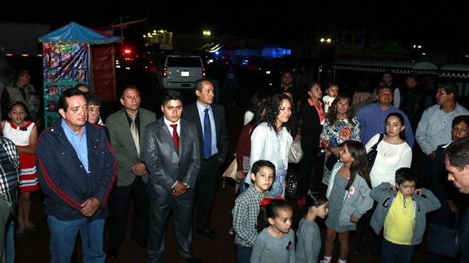 Luego del recorrido que realizaron las autoridades municipales hacía las instalaciones de la feria, retornaron al jardín principal donde se realizó el acto protocolario de la coronación de la reina, donde la joven Lupita Razo se coronó.