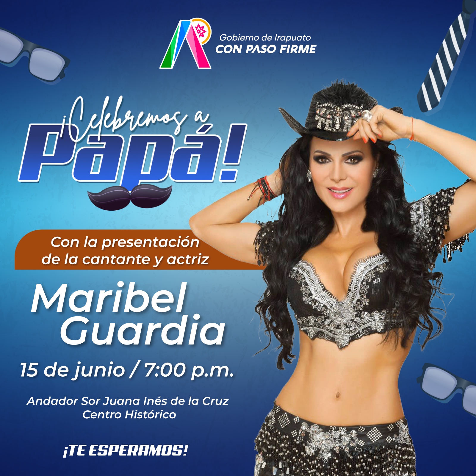 Irapuato, Gto. 12 de junio del 2024.- Para celebrar el Día del Padre, este sábado 15 de junio el Gobierno de Irapuato ofrecerá actividades para todos los irapuatenses que son papás y sus familias, un día de fiesta que cerrará con broche de oro con la presentación de la cantante y actriz, Maribel Guardia.
