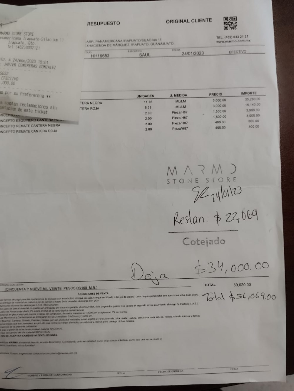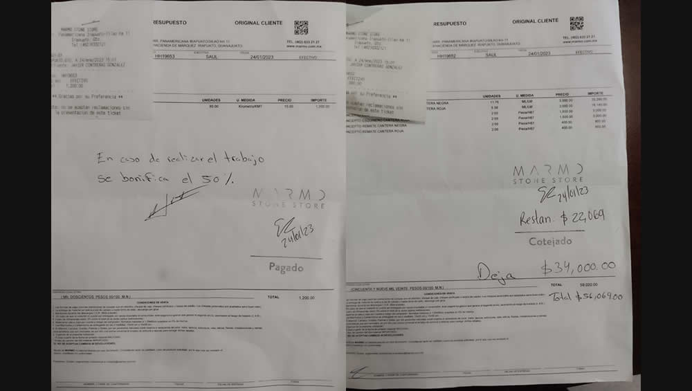 “Acudí el 24 de enero de 2023 a la tienda Marmo Stone Store, más conocida como Mármoles y canteras Godoy, hice una compra por 59 mil pesos, para lo cual dejé un anticipo de 35,200, la fecha de entrega se pactó para el 28 de febrero, desafortunadamente es una empresa irresponsable y mentirosa, que siempre estuvieron actuando con mentiras”, dijo el afectado.