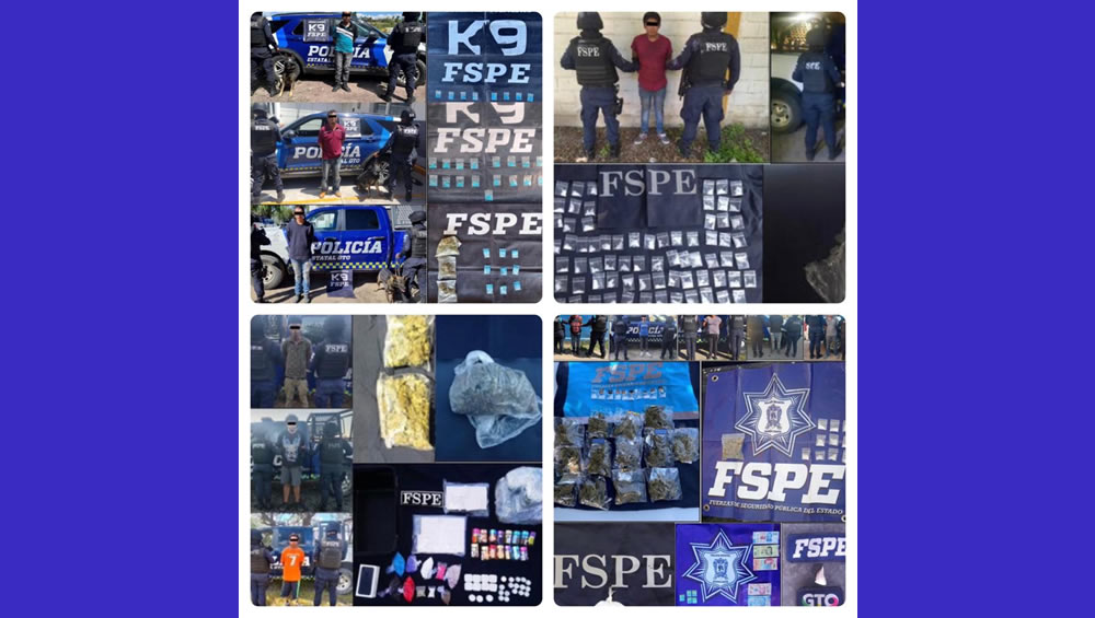 El Operativo Guanajuato Seguro continúa reportando importantes resultados en el aseguramiento de drogas y armas. Durante el mes de Septiembre, sacó de las calles y con ello evitó el consumo de 22 mil 373 dosis de diversas drogas; aseguró 67 armas de fuego, 915 cartuchos útiles y detuvo a 305 personas por la comisión de diversos delitos.