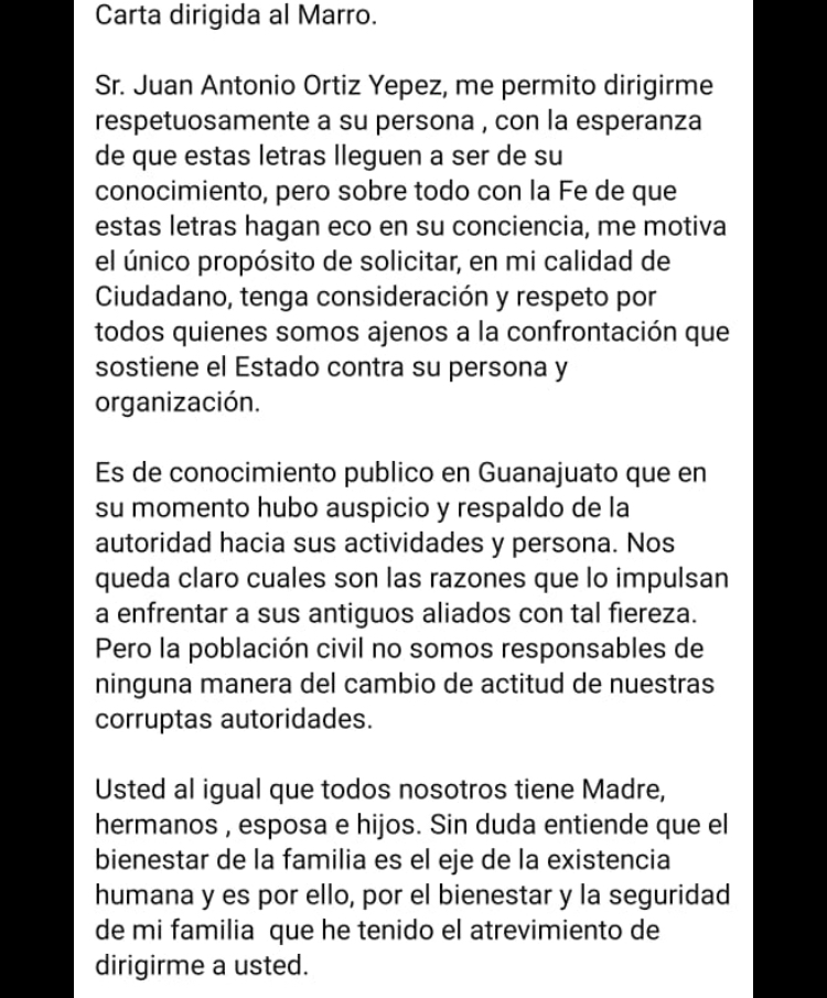 La policía municipal de Abasolo inmediatamente acordonó el sitio para mantener seguridad en el lugar del crimen pues se menciona que los hechos están relacionados con una carta que el hoy occiso publicó en redes sociales dirigiéndose al “Marro” en donde pide de manera anónima no meterse con gente inocente.