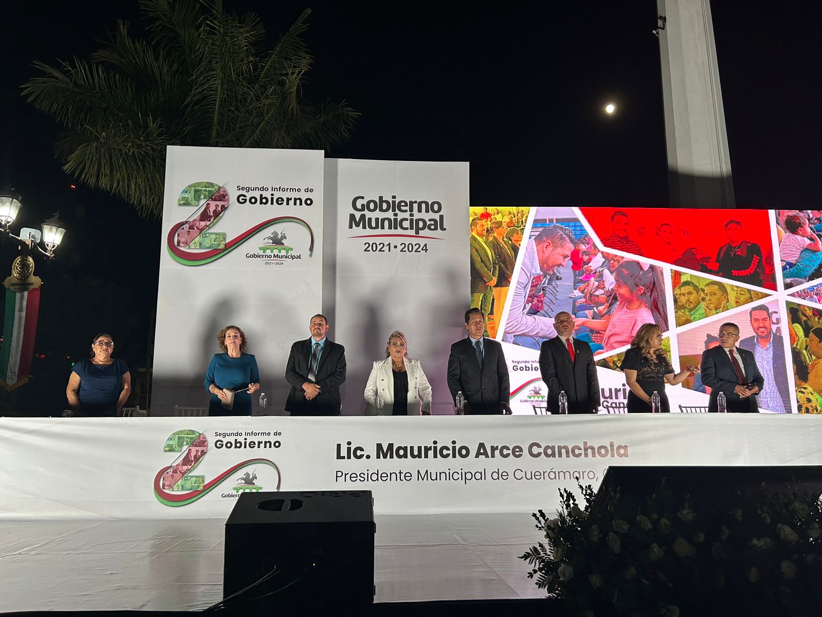 Cuerámaro, Guanajuato. Con una inversión histórica de 80 millones de pesos tan sólo en obra pública, fue como el alcalde de Cuerámaro, Mauricio Arce Canchola, presentó su segundo informe de gobierno ante cientos de cueramarenses que avalaron su trabajo.