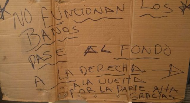 Afuera de los baños sólo se puede leer el mensaje de que los baños no funcionan.