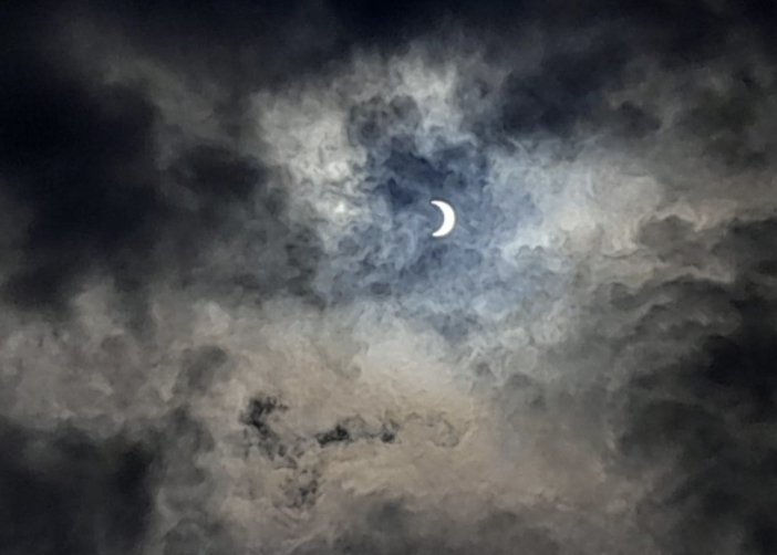 Guanajuato, Gto.- Un cielo nublado permitió disfrutar con menos riesgos para los ojos el eclipse solar de este 14 de octubre. A las 11:02 fue el momento cúspide en la ciudad de Guanajuato. De no voltear hacia el cielo, el día parecía una tarde con camino a anochecer.