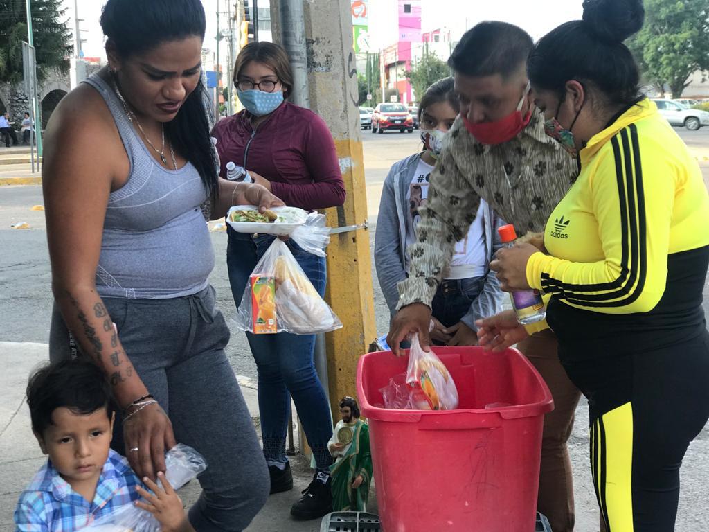 Irapuato, Guanajuato.- Desde tacos hasta mole y pasando por el pozole, fueron algunos de los platillos que se vieron repartidos en las zonas hospitalarias donde familiares y amigos esperan por horas noticias de sus enfermos.