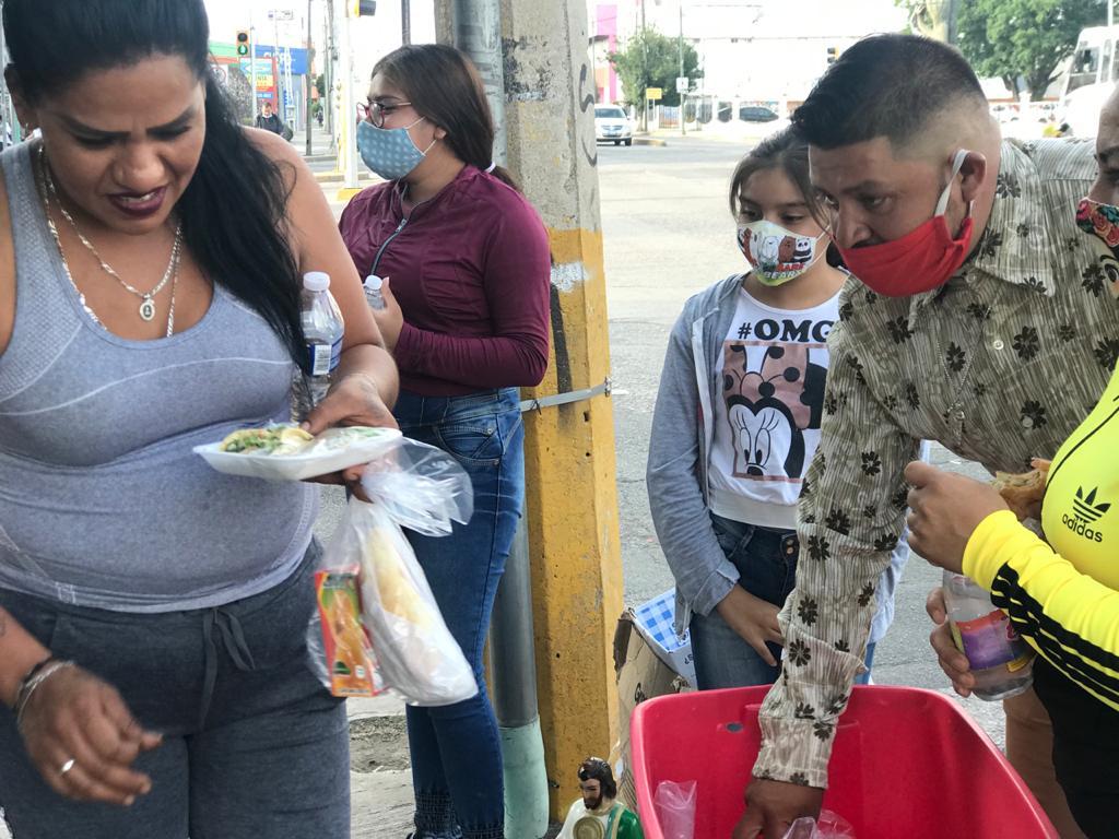 Christopher González Hernández junto a su hermano estuvieron repartiendo en su vehículo particular platos de tacos junto con botellas de agua en la zona hospitalaria del IMSS.
