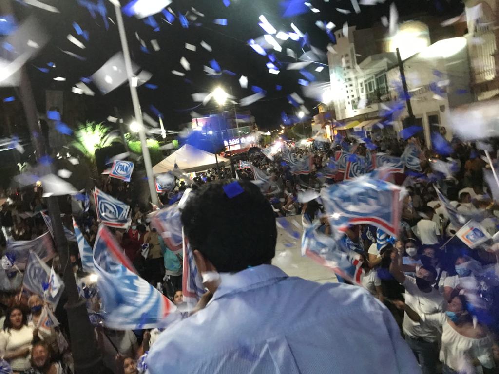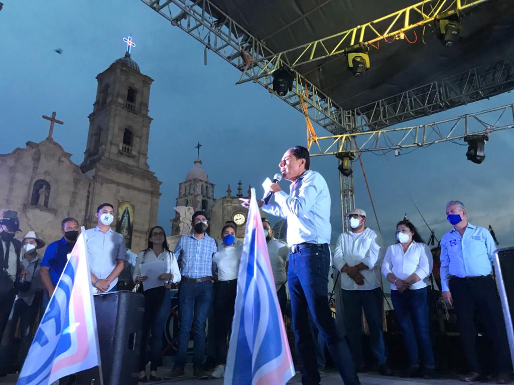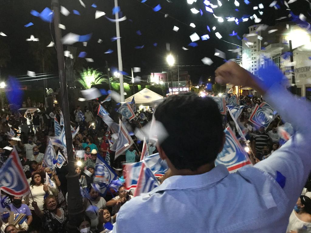 Con música de la banda “La Huérfana” de Michoacan los cuaramarenses con alegría bailaron y disfrutaron el cierre de campaña protagonizado por la ola azul (PAN).