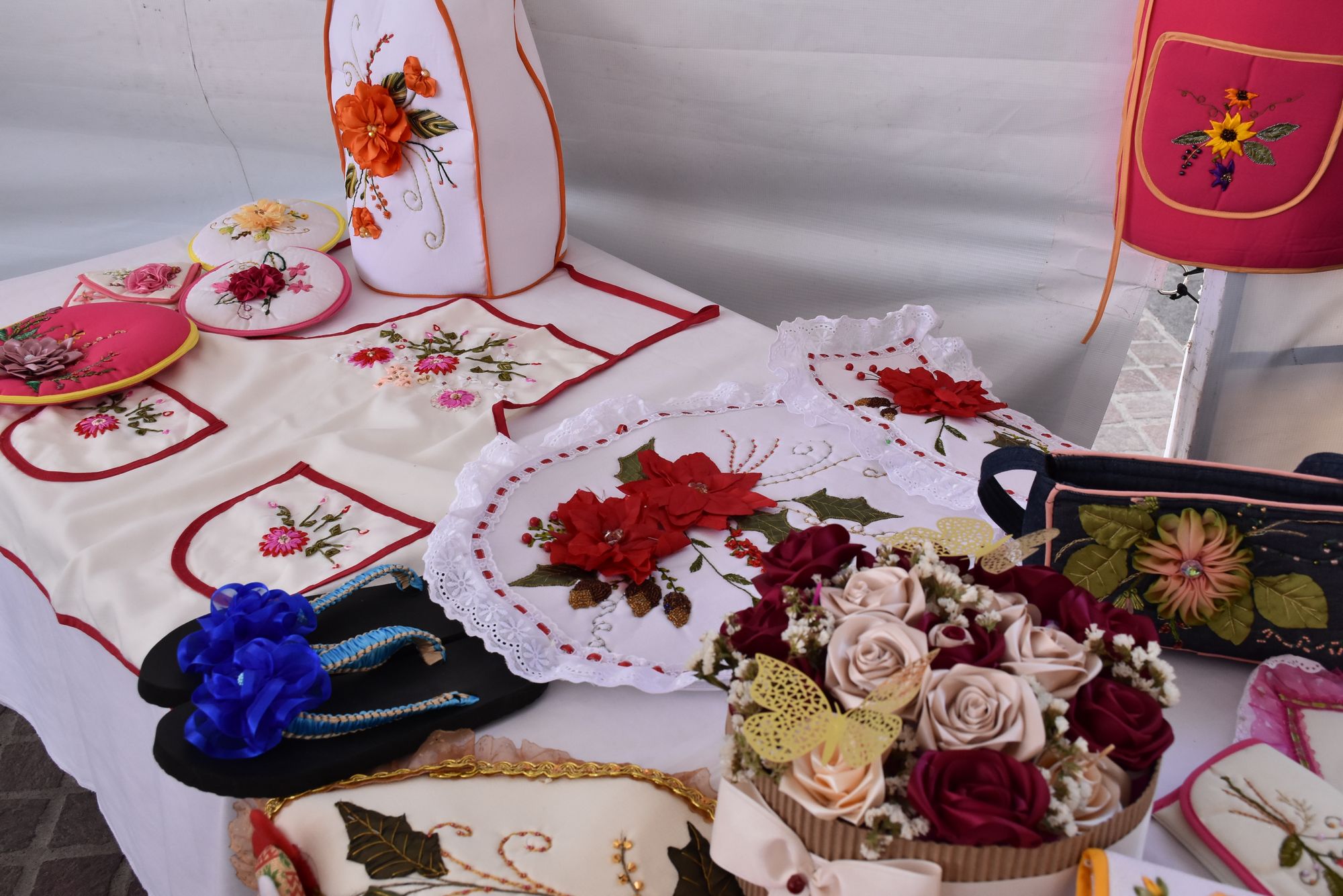 Abasolo, Gto.- El Centro Histórico de Abasolo se vistió de colorido con la Muestra Artesanal de Talleres de la Casa de la Cultura “Manos Creativas” en donde se montó una bonita exposición de los Talleres y Salones Culturales de Bordado Mágico, Bordado de Listón, Tejido, Pintura en Tela, Escultura en uñas y Cartonería.
