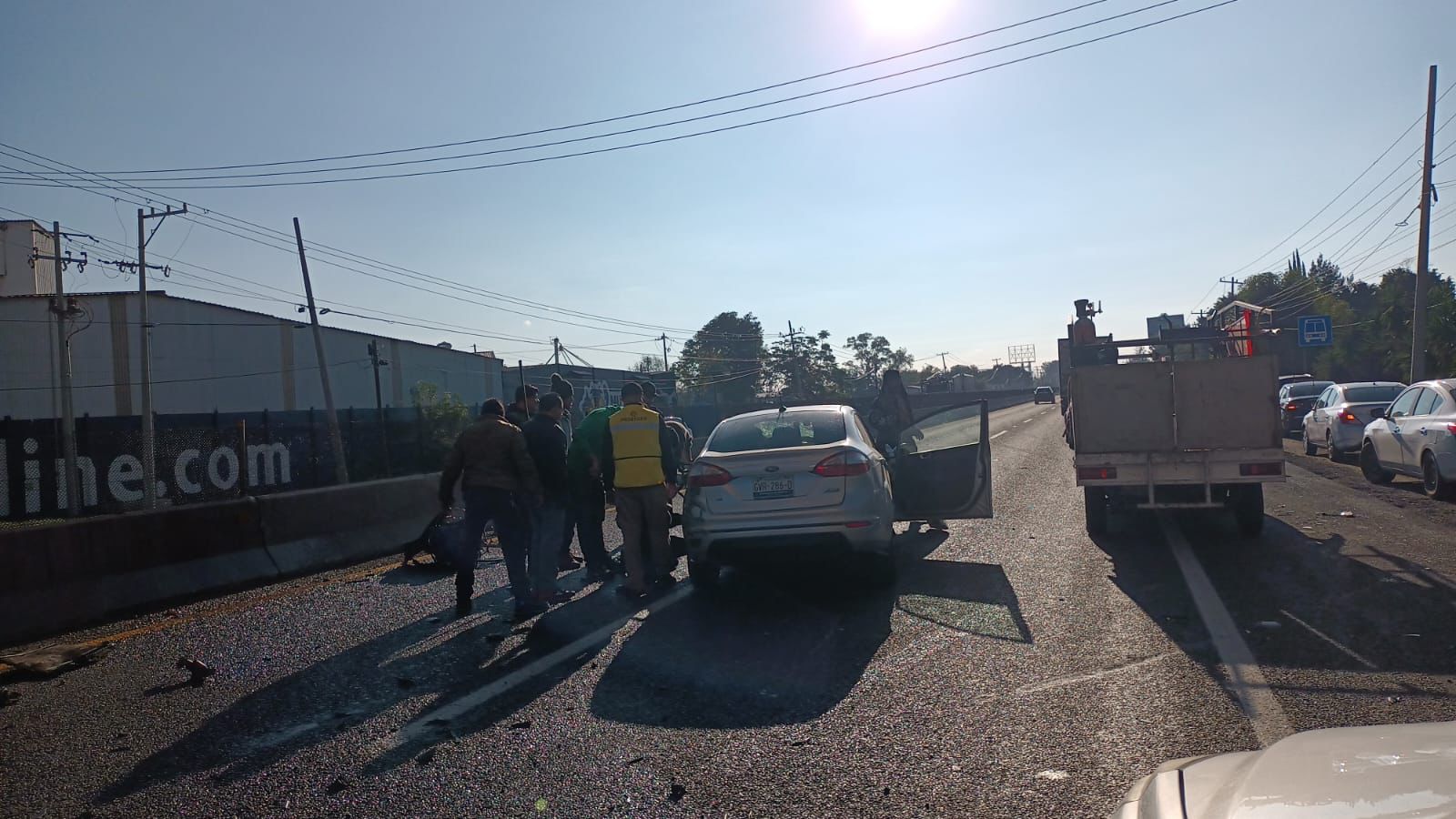 El incidente, registrado alrededor de las 9 de la mañana, se presume que fue ocasionado por el repentino ingreso del tráiler, lo que dejó al conductor del Ford Fiesta sin