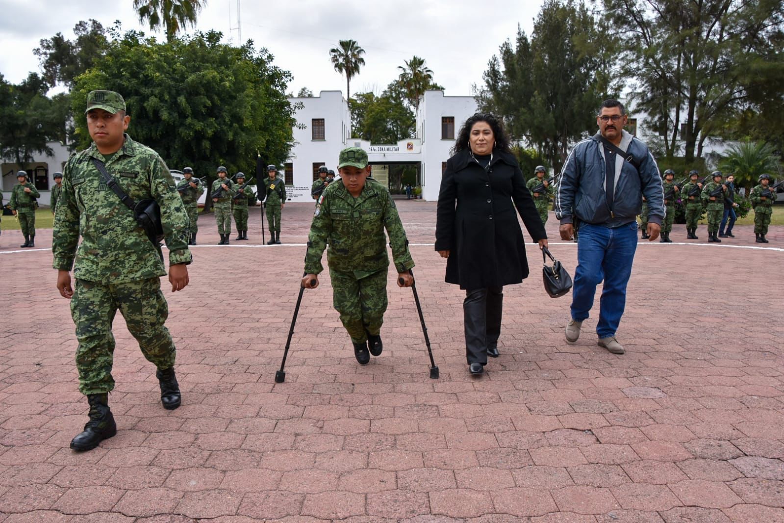 Irapuato, Guanajuato.- La ceremonia “Soldado Honorario” realizada en las instalaciones de la 16/a zona militar para el menor Juan Armando Arias Lugo, originario del municipio de San Miguel de Allende, Guanajuato, vivió el emocionante momento de convertirse en soldado por un día, pese a ser una persona con capacidades diferentes.