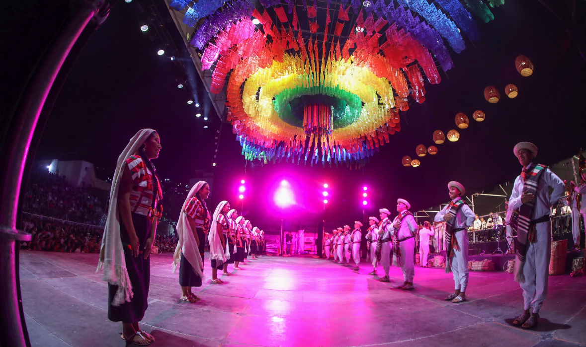 Fueron más de tres horas de espectáculo, con grupos que dieron forma, luz y entusiasmo a miles que atiborraron gradas y escalinatas, que se apoltronaron por las calles adyacentes, que llenaron azoteas de las fincas cercanas con la explosión de alegría de regiones y diversidades culturales de Oaxaca: Chinas Oaxaqueñas, San Pedro Pochutla, San Melchor de Taza, Heroica Ciudad de Tlaxiaco, Juchitán de Zaragoza, Santiago Llano Grande, Heroica Ciudad de Huajuapan de León, Valle de Zaachila, Putla Villa de Guerrero, Pinotepa Nacional y San Juan Bautista Tuxtepec.