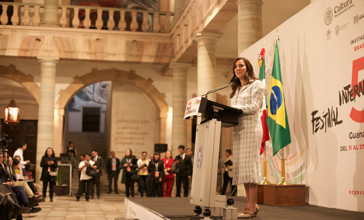 Libia Dennise García Muñoz Ledo, gobernadora del Estado de Guanajuato y Samantha Smith, presidenta municipal de la ciudad de Guanajuato, dieron la bienvenida a la concurrencia y destacaron que ahora las mujeres ocupan espacios destacados tanto en la política como en la cultura.