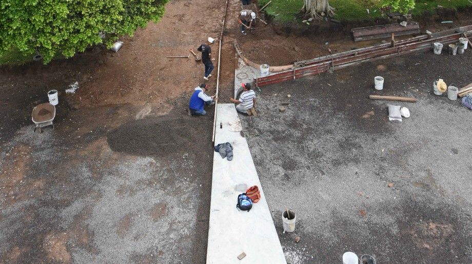 Actualmente se trabaja en los trazos, la nivelación, rellenos de sub-base y base hidráulica para el alojamiento de registros eléctricos, entre otros trabajos complementarios.