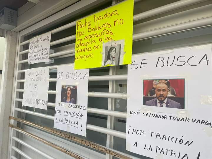 Con insultos verbales y escritos, un grupo de “simpatizantes” a Andrés Manuel López Obrador, fueron a gritonear y “obligar” el cierre de la oficina de Itzel Balderas.