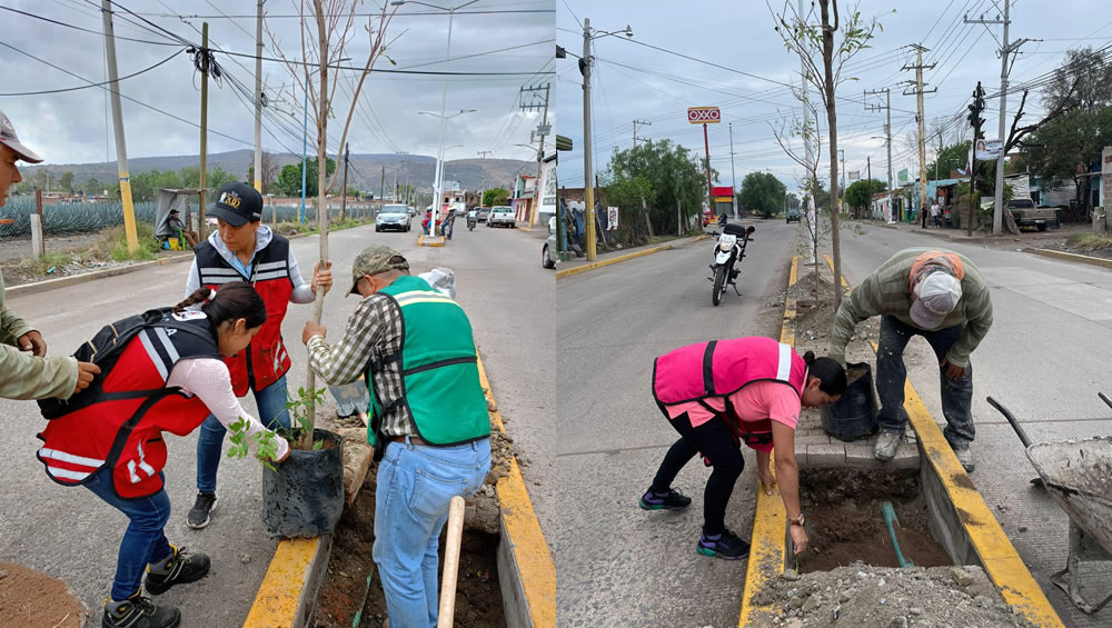 Abasolo, Gto.-La Dirección de Ecología Municipal en conjunto con personal de las Direcciones de Servicios Públicos y Obras Públicas realizaron la plantación de 28 árboles de especie San Pedro – Tronadora sobre el camellón de la Prolongación Blvd. Juárez, esto con el objetivo de colaborar en la nueva obra de electrificación, brindando así una mejor alternativa para un Abasolo Verde.