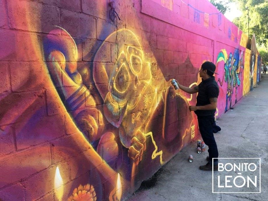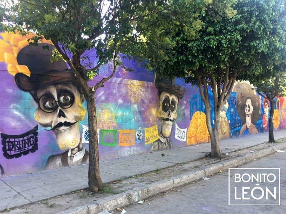 El Panteón Municipal Norte de León Guanajuato se tiñó de arte gracias a las manos de 67 artistas quienes plasmaron sus murales representando a la popular película de Coco.
