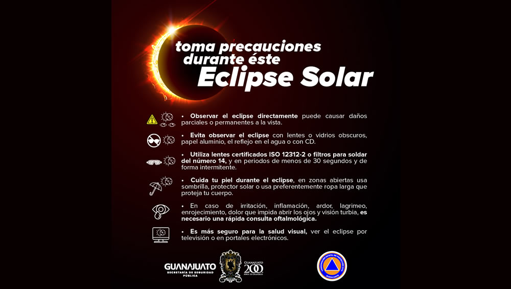 Por lo anterior, la Coordinación de Protección Civil Pénjamo, recomienda a toda la ciudadanía, el uso de lentes y filtros especiales para evitar daños al observar este fenómeno.