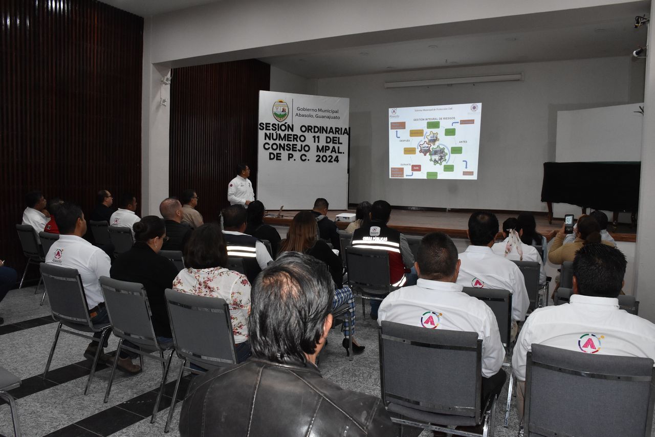Abasolo, Gto.- Este miércoles 26 de junio, en sesión presidida por la Presidenta Municipal Rocío Cervantes Barba, la Coordinación Municipal de Protección Civil, dirigida por Miguel Ángel Hernández Ayala, presentó a los integrantes del Consejo Municipal, el Plan de Contingencias para la Temporada de lluvias 2024.