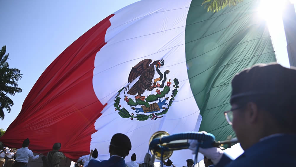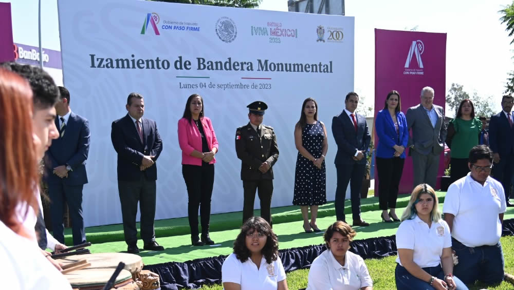 Como parte de las actividades conmemorativas del mes patrio, autoridades municipales, estatales y federales, así como de instituciones educativas, realizaron el izamiento de la Mega Bandera, para fomentar el orgullo por nuestra patria.