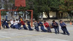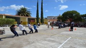 Antes de iniciar con el simulacro, personal de Prevención del Delito realizó unas dinámicas, en donde los niños mediante juegos aprendieron la importancia de trabajar en equipo.