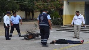 Cuerámaro, Guanajuato.- La dirección de Protección Civil en Coordinación con Prevención del Delito realizó un simulacro de un accidente con una motocicleta en la escuela primaria Benito Juárez de la comunidad de La Presa de Uribe.