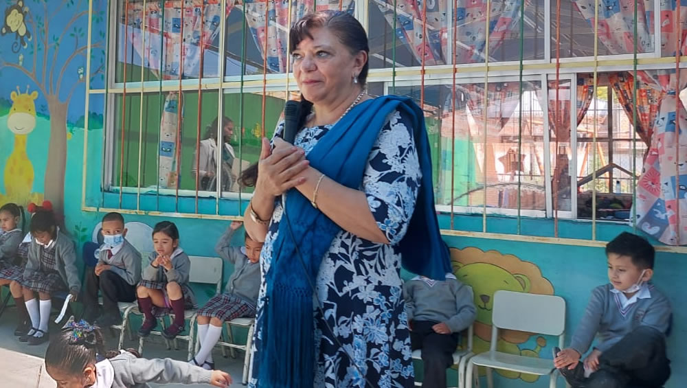 Irapuato, Gto. – Ma. de los Ángeles Valdés López, con 44 años entregada a la educación de niñas y niños guanajuatenses, fue reconocida a través del programa “Docentes que Dejan Huella”, instituido por el Sector Educativo No. 17 de Preescolar, perteneciente a la Delegación Regional IV, como un incentivo al trabajo destacado, realizado entre la comunidad educativa, y por sus aportes no solo dentro de las aulas, sino fuera de ellas.